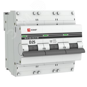 Авт. выкл. 3P 25А (D) 10kA ВА 47-100M без тепл. расцепит. EKF PROxima