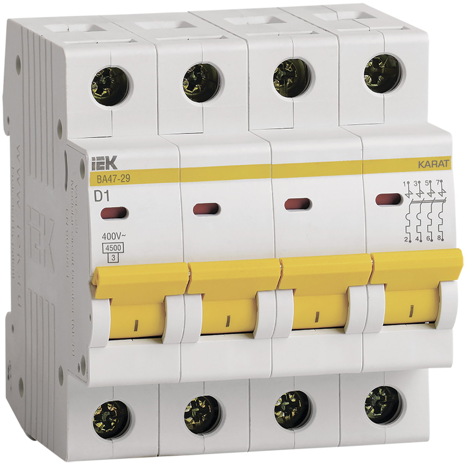KARAT Автоматический выключатель ВА47-29 4P D 1А 4,5кА IEK