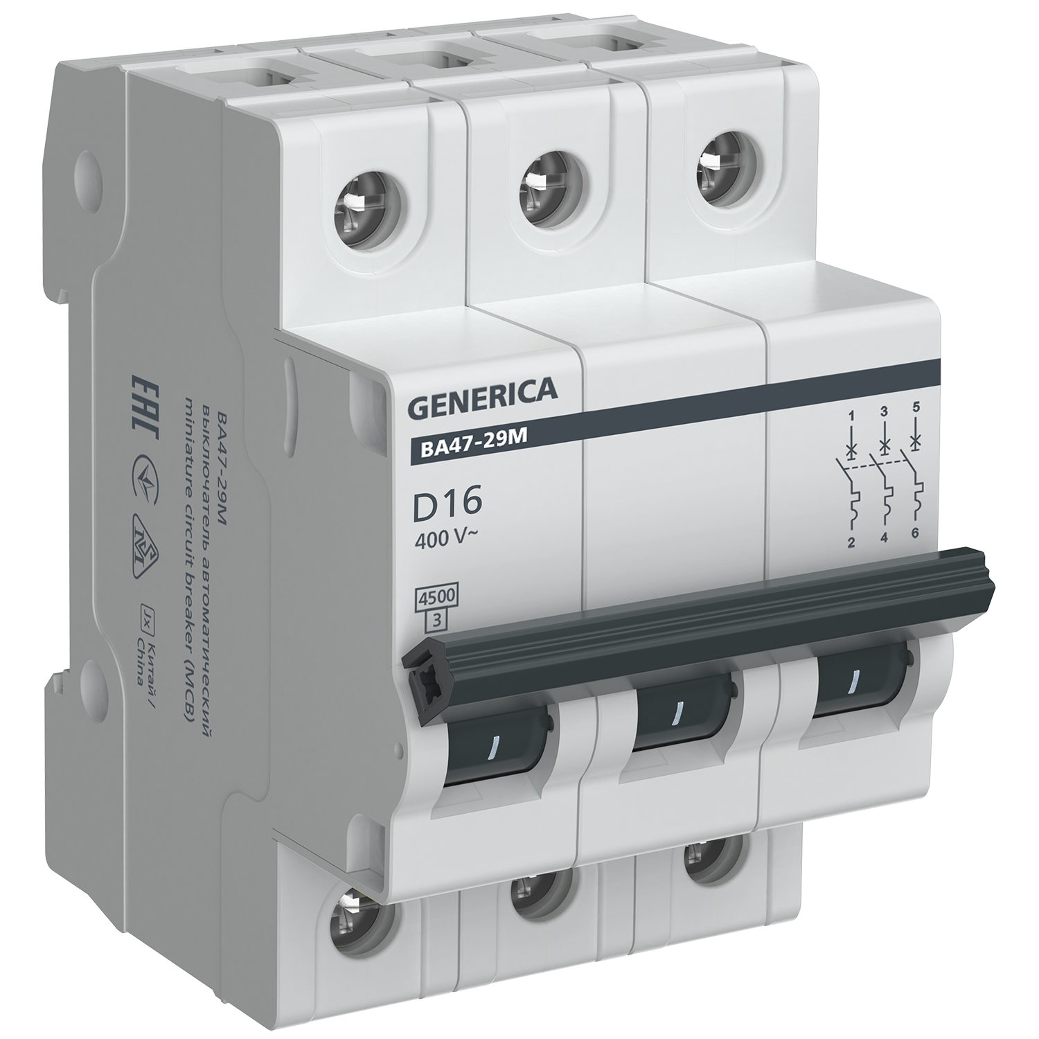Автоматический выключатель ВА47-29М 3P 16А 4,5кА D GENERICA