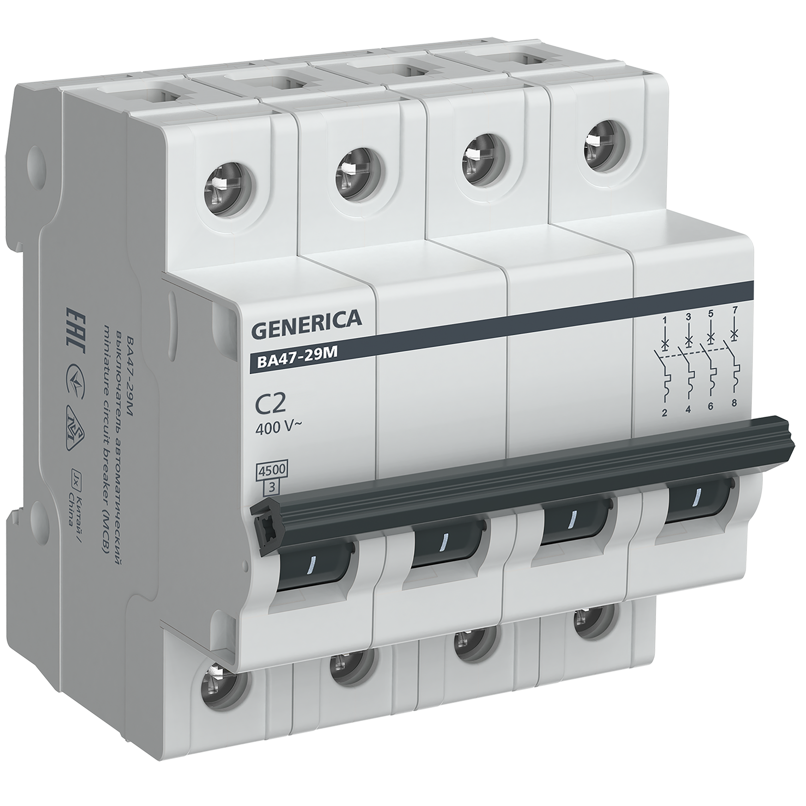 Автоматический выключатель ВА47-29М 4P 2А 4,5кА C GENERICA