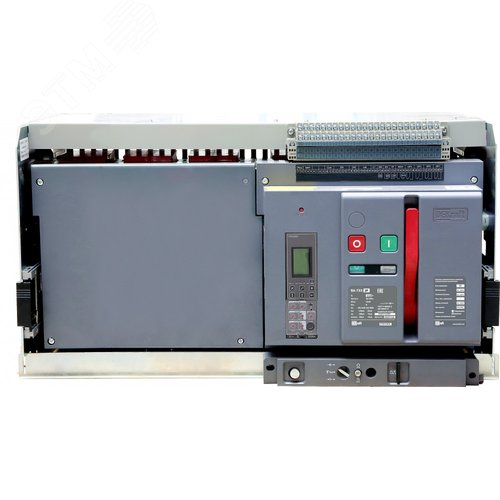 Воздушный автоматический выключатель серии ВА-733 DEKraft - 3P, номинальный ток 5000 А - отключающая способность 120 кА, выкатной, блок управления типа H - присоединения задние горизонтальные. В базовую комплектацию входят моторный привод (230 В пер.тока), 4 контакта состояния ВКЛ/ОТКЛ, сигнальный контакт, электромагнит включения (230 В пер.тока), независимый расцепитель (230 В пер.тока), сигнальный контакт положения аппарата в корзине, разделители полюсов и рамка передней панели. Выключатели с блоком управления типа H позволяют осуществлять мониторинг и диспетчеризацию защищаемой сети и нагрузок.