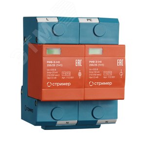 Мощное двухполюсное УЗИП класса I+II коммутирующего типа со сменными рабочими модулями на основе мультиэлектродного и двухэлектродного газонаполненного разрядника и базы для подключения к сети. УЗИП выдерживает токовые нагрузки, соответствующие УЗИП класса I, а по способности ограничения импульсных напряжений, допустимых для изоляции оборудования, соот- ветствует УЗИП класса II. Устанавливается в пределах 0А(В) – 1 зон молниезащиты (в соответствии с ГОСТ Р МЭК 62305-1 и СО-153-34.21.122). Применяется для сетей с системами заземления - TN-S, TT. Предназначено для защиты фазного и нулевого проводников от перенапряжений ''провод-провод''. Рекомендуемый номинал предохранителя не менее 125 А gL/gG.