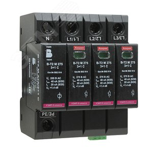 УЗИП СЕРИИ БЛИЦ-Т В-Т2 М 275/3+1 С класса испытаний II, In=20 кА, Imax(8/20) = 40 кА, Uc = 275 В AC