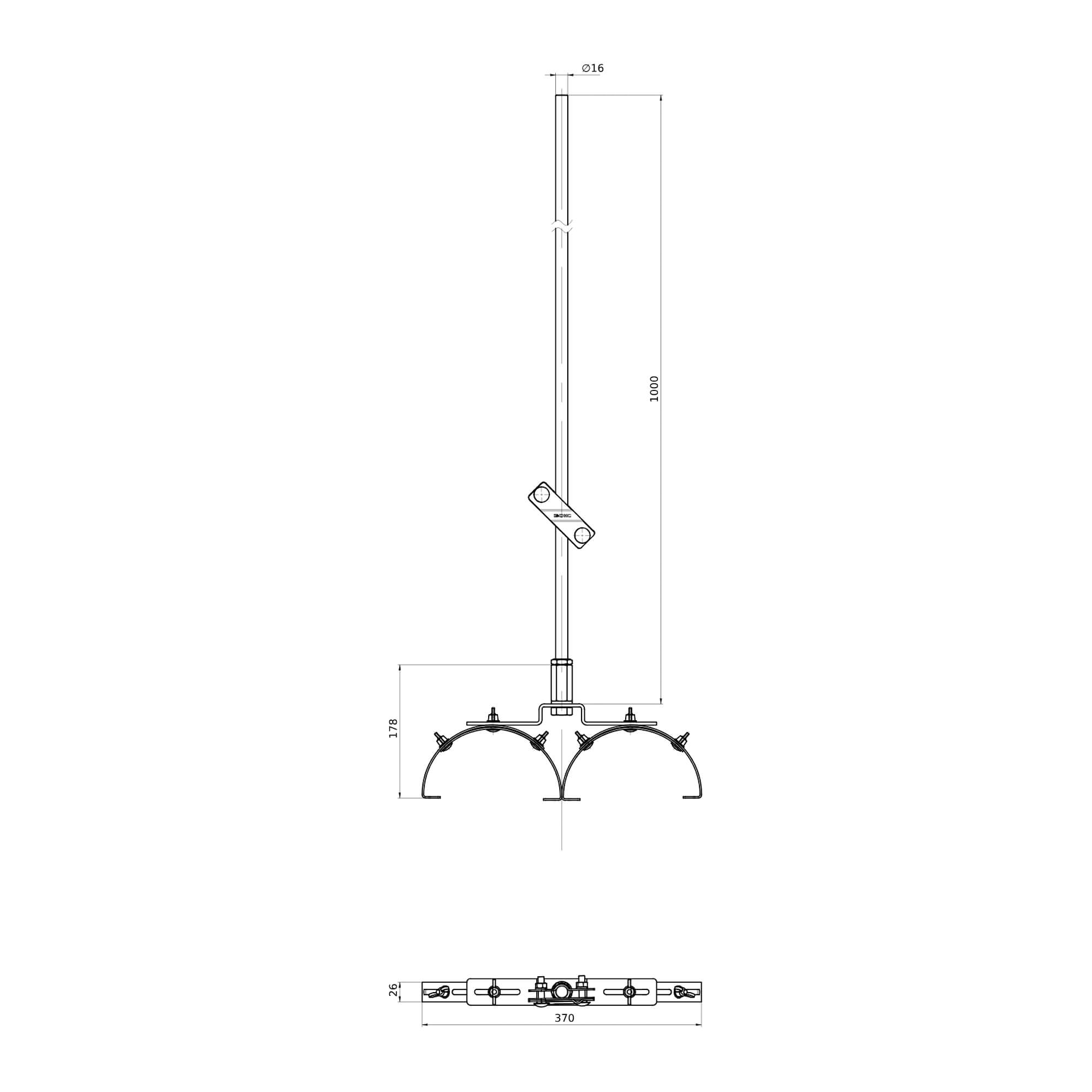 Молниеприемник коньковый с регулируемыми зажимами, 1000 мм