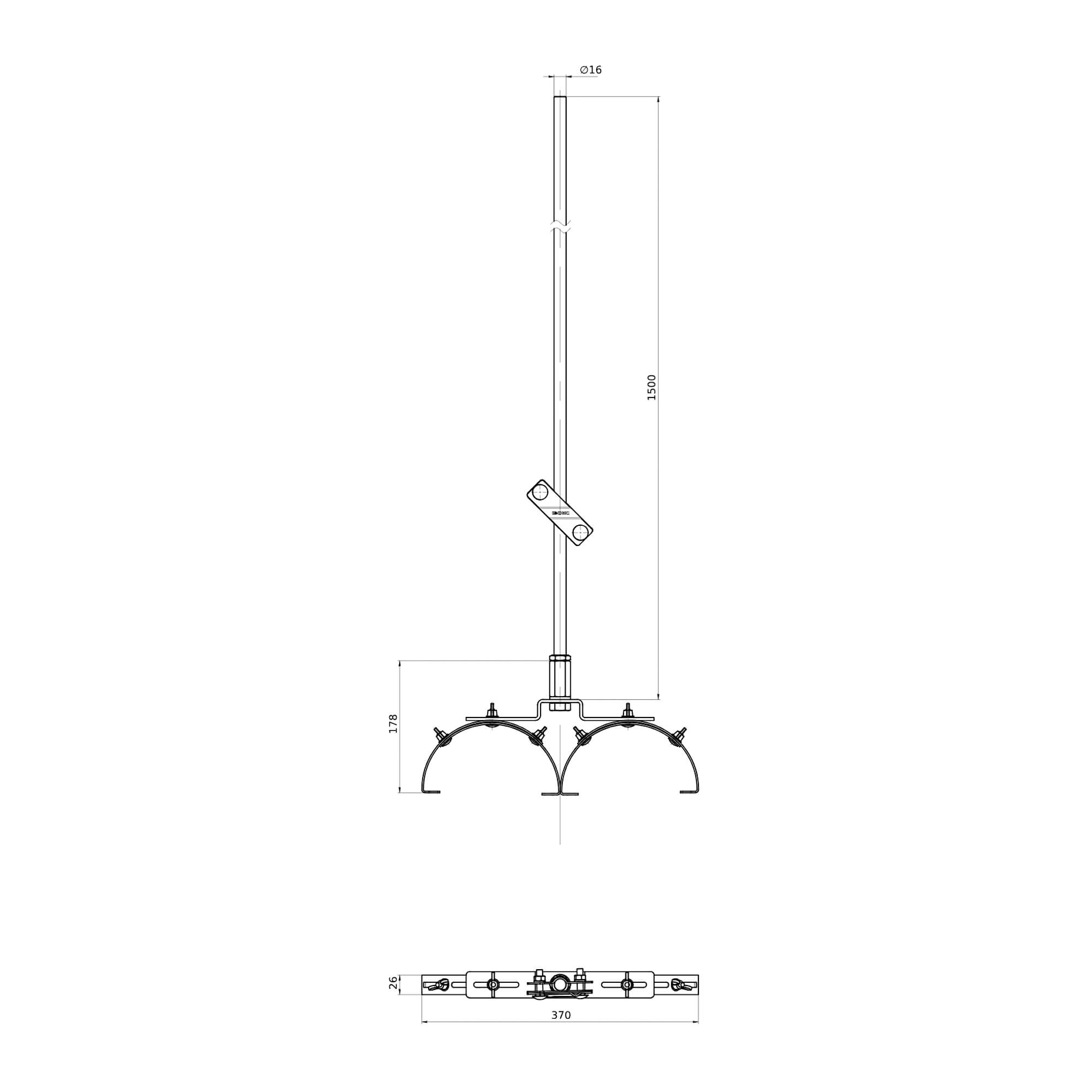 Молниеприемник коньковый с регулируемыми зажимами, 1500 мм