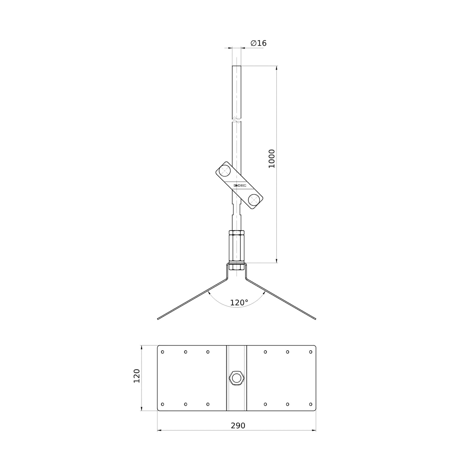 Молниеприемник коньковый с угловым зажимом, 1000 мм