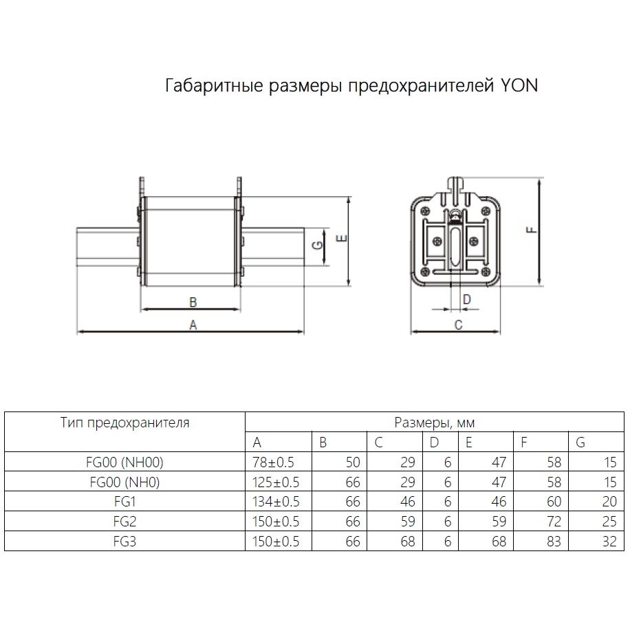 Предохранитель YON ножевого типа FG00 10А 400V характеристика aR
