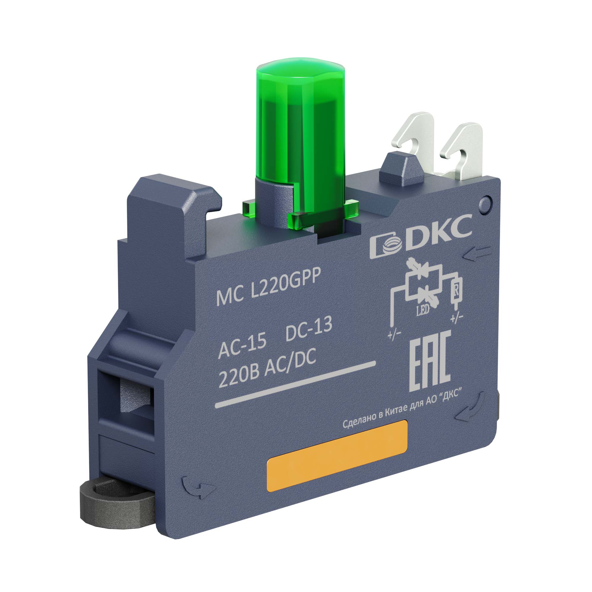 Контактный блок с клеммным безвинтовым зажимом со светодиодом на 220В, зелёный