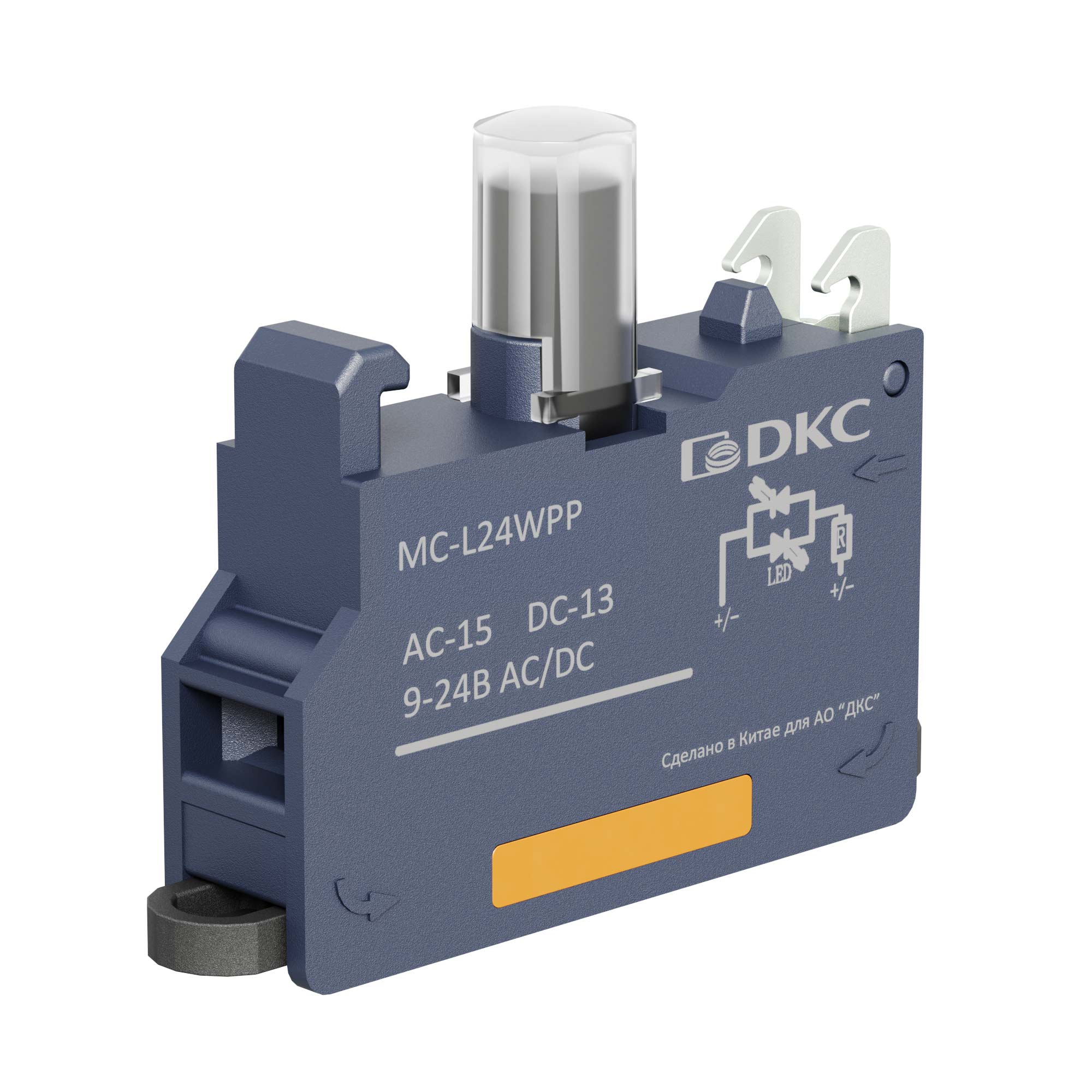 Контактный блок с клеммным безвинтовым зажимом со светодиодом на 9-24В, белый