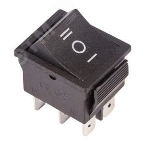 Выключатель клавишный 250V 15А (6с) ON-OFF-ON черный с нейтралью (RWB-508, SC-767) предназначен для коммутации электрических цепей переменного тока напряжением до 250В. Клавишные (Рокерные) выключатели применяются в качестве комплектующих изделий различного электрооборудования (в сетевых фильтрах и удлинителях, аудио-оборудовании, блоках питания, электроустановках на различных производствах, автомобилях, и многих других местах). Такой клавишный переключатель имеет три положения. Принцип действия основан на перемещении клавиши в одну из позиций. Для переключения в нужное положение требуется приложить некоторые усилия на клавишу. Монтаж осуществляется без применения винтов на плоских панелях толщиной от 0.8мм до 3мм. Подключение контактов осуществляется плоской клеммой 6.6мм, либо с помощью пайки.