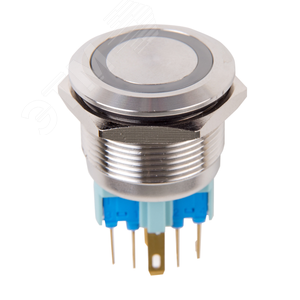 Предназначена для коммутации электрических цепей напряжением 12 В путем включения-выключения питающего провода. Металлические кнопки применяются в местах, где существует большой риск их повреждения (на различных производственных линиях, в лифтовых кабинах, около входной двери и т. д.), а также для декоративного оформления панелей управления. Главными отличительными особенностями такой кнопки являются металлическое исполнение и неуязвимость контактной группы, что обеспечит ей долговечное функционирование. Изделие состоит из двух основных частей – лицевой части (головки) и контактной, и имеет пружинный возвратный механизм. Монтаж осуществляется без применения винтов на плоских панелях толщиной от 0.5 до 10 мм. Подключение проводов осуществляется с помощью винтовых зажимов, пайки или разъемом.