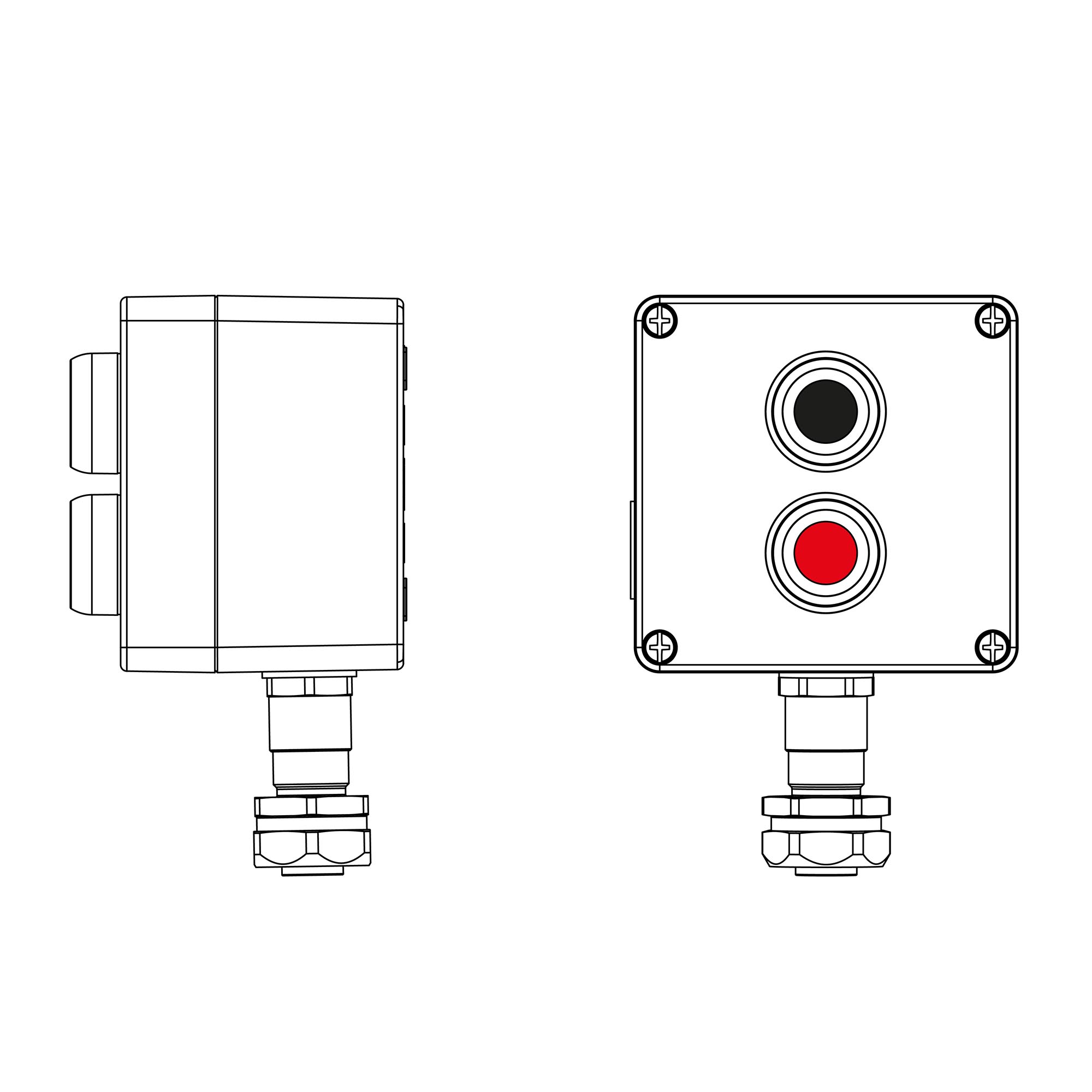Взрывозащищенный пост управления из алюминия CPE-A-12-(1xP1B(11)-1xP1R(11))-1xKAEPM2MHK-20(C)1Ex d e IIC Т5 Gb / Ex tb IIIC T95°C Db IP66