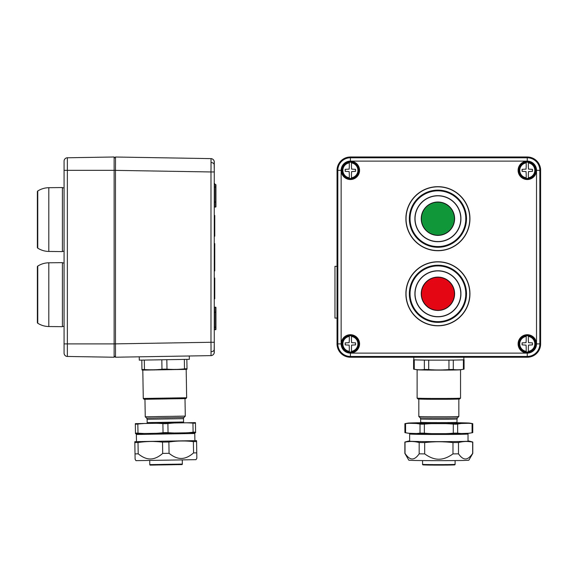 Взрывозащищенный пост управления из алюминия CPE-A-12-(1xP1G(11)-1xP1R(11))-1xKAEPM2MHK-20(C)1Ex d e IIC Т5 Gb / Ex tb IIIC T95°C Db IP66