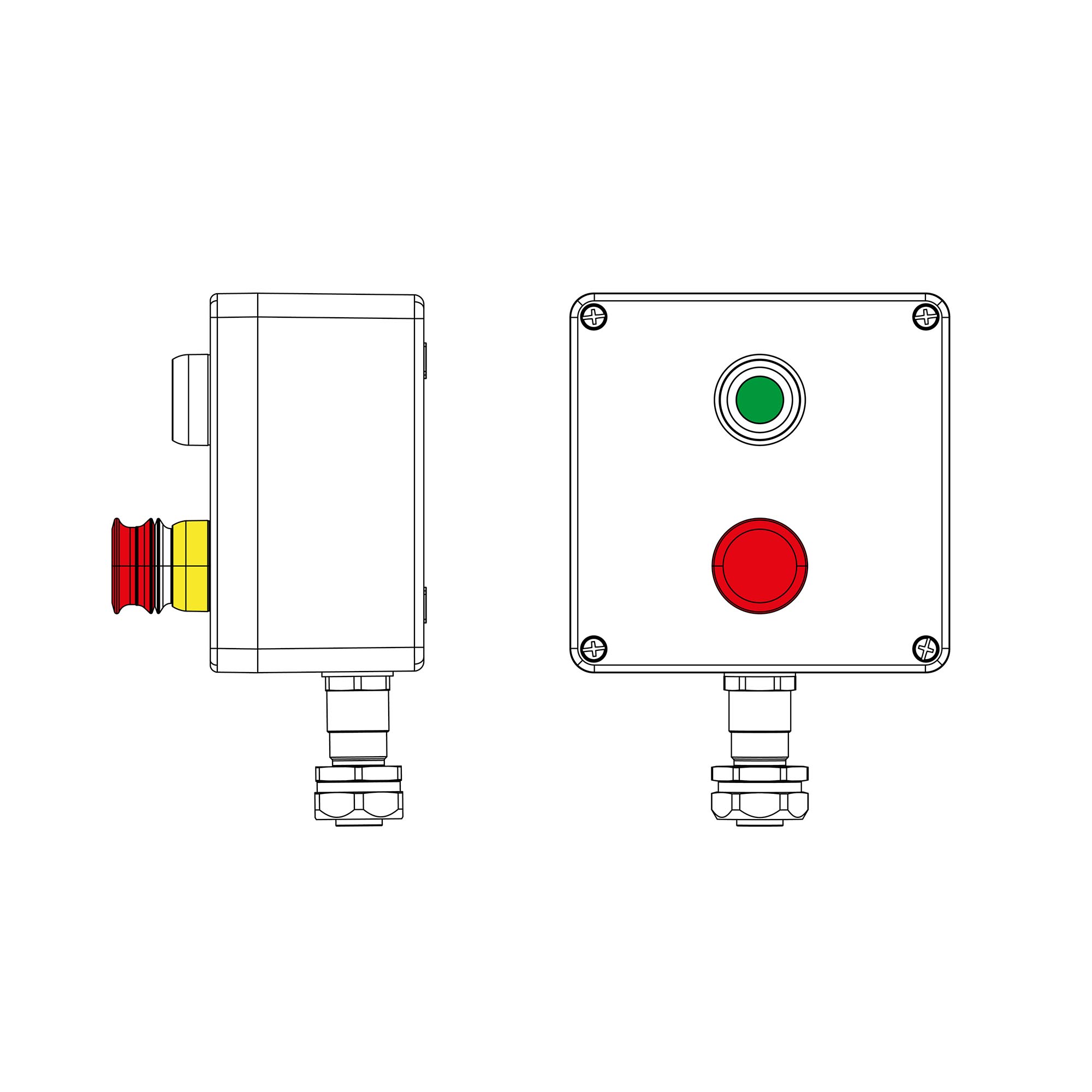 Взрывозащищенный пост управления из полиэстера CPE-P-05-(1xP1G(11)-1xP3E(11))-1xKAEPM2MHK-20(C)1Ex d e IIC Т5 Gb / Ex tb IIIC T95°C Db IP66/КЗ