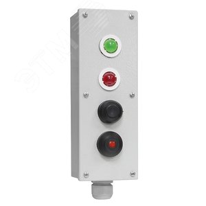 Пост управления ПКУ-15-21.231-54У2 (2хСКЛ11 зеленая, 220В + 2хКЕ081/2(1з+1р) черная + 1хКЕ141/2(1з+1р) красная, гриб с фиксацией + 1хзаглушка + PG-36)
