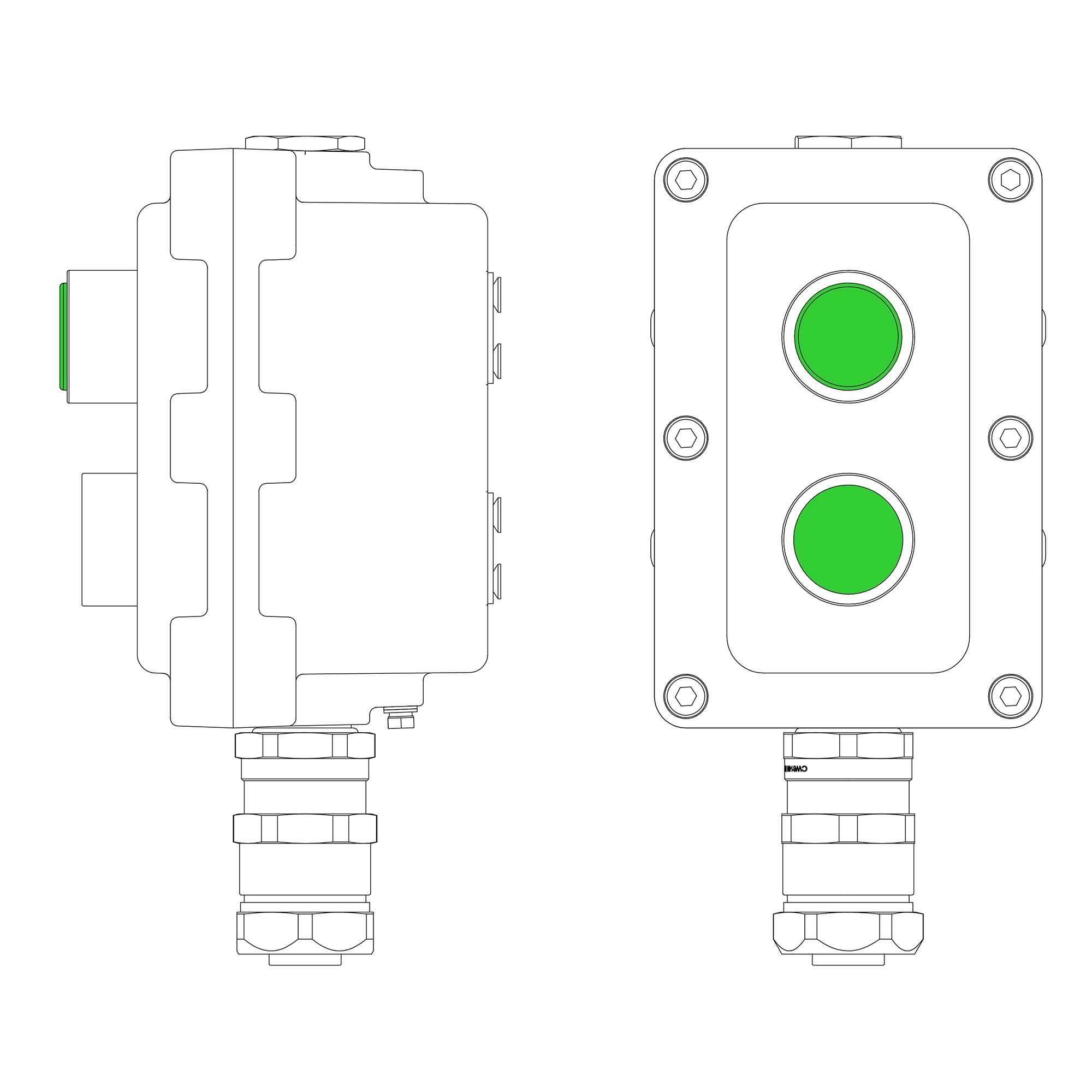 Взрывонепроницаемый пост управления из алюминия LCSD-02-B-MB-L1G(220)x1-P1G(11)x1-PBMB-ANP15BMB / 1Ex d IIB T5 Gb / Ex tb IIIC T95°С Db IP66