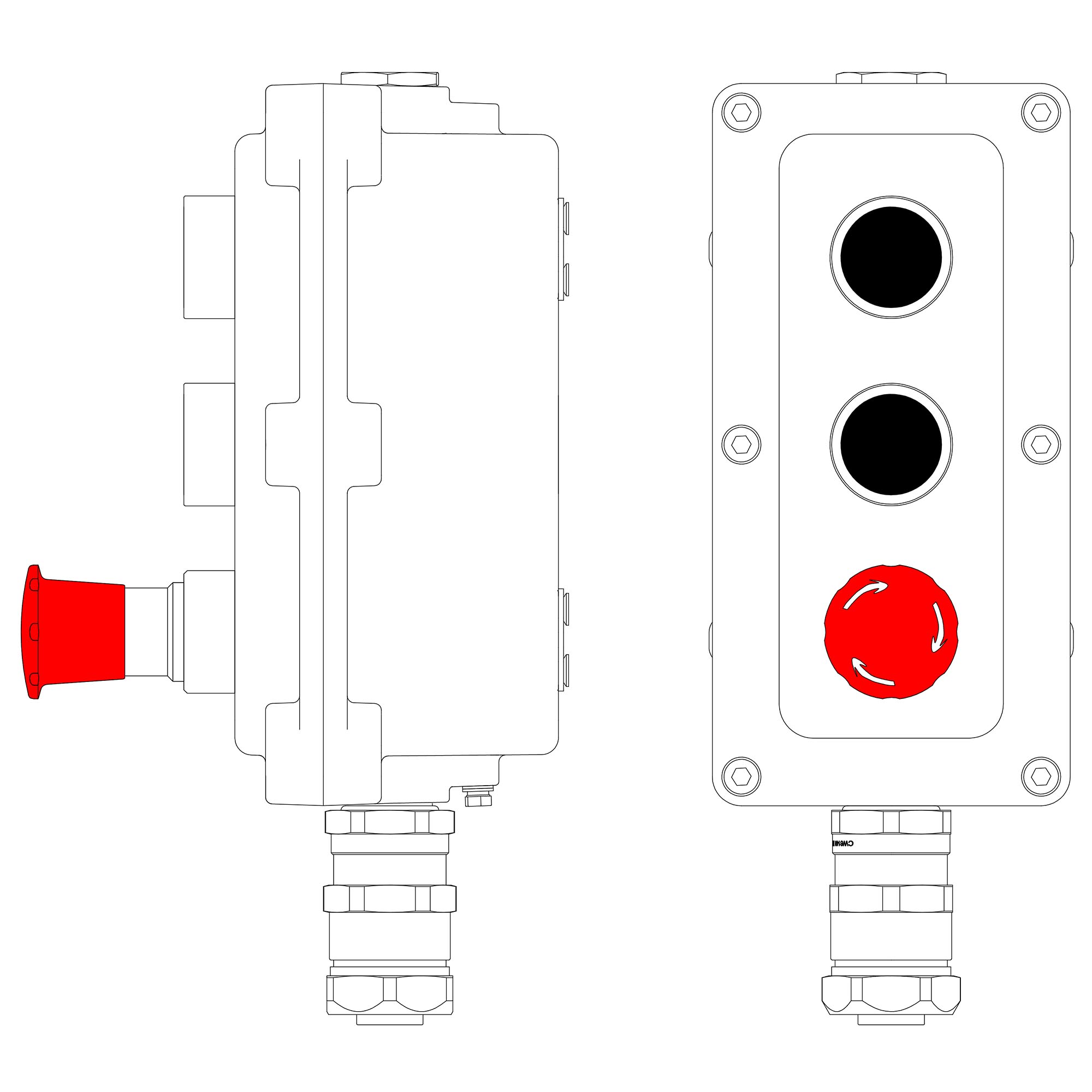 Взрывонепроницаемый пост управления из алюминия LCSD-03-B-MB-P1B(11)x1-P1B(11)x1-P6R(11)x1-PBMB-ANP15BMB / 1Ex d IIB T5 Gb / Ex tb IIIC T95°С Db IP66