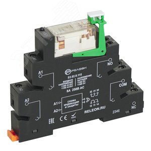 Интерфейсный модуль реле, 2 перекидных контакта 8А (110-115В AC/DC) винтовые зажимы, прозрачный корпус реле