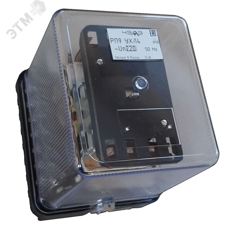 Реле промежуточное РП9 арт. 270090037 01 двухпозиционное производится по ТУ16-523.072-75 и предназначено для применения в цепях переменного тока в качестве вспомогательных реле. Реле РП9 выполнено на поляризованном принципе. В реле типов РП 9, РП 12 срабатывание якоря в ту или другую сторону происходит при питании катушки за один определенный для каждого направления полупериод напряжения. Механизм реле смонтирован в прямоугольном корпусе, состоящем их цоколя и кожуха. Время срабатывания реле РП9 220В от момента подачи напряжения на катушку реле до момента замыкания замыкающего контакта - не более 0,06 секунд. Замкнутые контакты допускают протекание по ним тока до 5 А. Коммутационная способность контактов реле РП9 220В при токе не более 2А или напряжении от 24 до 250 V мощностью 50 Вт в цепях постоянного тока с индуктивной нагрузкой постоянная времени которой не более 0,005 сек., и 45 ВА в цепях переменного тока с коэффициентом мощности нагрузки не менее 0,5.