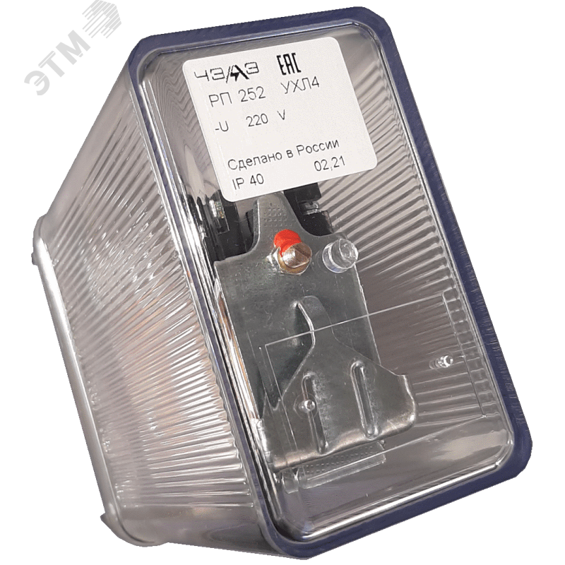 Реле промежуточное с выдержкой времени РП252 серии РП 250 изготавливается по ТУ16-523.483-78 и предназначено для применения в качестве вспомогательного реле в цепях постоянного тока (РП 251, РП 252, РП 253, РП 254, РП 255) когда требуется выдержка времени при отпускании (реле типа РП 252 и типа РП 256) Реле РП251, РП252 и РП256 имеют по одной обмотке напряжения (рабочей). Реле РП253 и РП255 имеют по одной обмотке напряжения (рабочей) и по три токовых (удерживающих). Кроме того, в реле РП253 имеется еще демпферная обмотка. Степень защиты оболочки реле промежуточное РП252 - IP40, а контактных зажимов для присоединения внешних проводников - IP00 по ГОСТ 14255-69. Все элементы схемы реле промежуточное РП252 арт. 272520147 01 смонтированы внутри корпуса, состоящего из основания (цоколя) и съемного прозрачного кожуха.