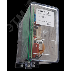 Промежуточное реле защиты и автоматики РП18-74 типа РП18 предназначено для применения в цепях переменного тока в схемах релейной защиты и противоаварийной автоматики для коммутации электрических нагрузок. Реле РП18-74 имеет одну включающую обмотку напряжения и одну отключающую обмотку напряжения. Обмотки напряжения реле выдерживают длительно 110% номинального напряжения. Климатическое исполнение промежуточного реле - УХЛ, категория размещения '4' по ГОСТ 15150-69. Группа механического исполнения М7 по ГОСТ 17516.1-90, при этом вибрационные нагрузки в диапазоне частот от 5 до 15 Hz с максимальным ускорением 3g и в диапазоне частот от 16 до 100 Hz с максимальным ускорением 1 g. Степень защиты оболочки реле IP40, а контактных зажимов для присоединения внешних проводников - IP00 по ГОСТ 14255-69. Все элементы схемы реле смонтированы внутри корпуса, состоящего из основания (цоколя) и съемного прозрачного кожуха (унифицированного корпуса 'СУРА' I габарита)