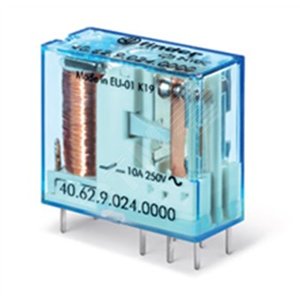 Реле электромеханическое универсальное миниатюрное, монтаж на печатную плату или в розетку, выводы с шагом 5мм, 2CO 10A, контакты AgSnO2, катушка 24В