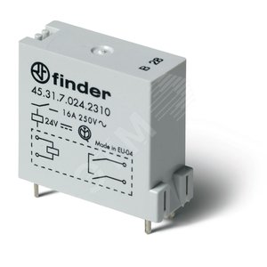 Реле низкопрофильное миниатюрное электромеханическое, монтаж на печатную плату, выводы с шагом 3.5мм, 1NO 16A, контакты AgCdO, катушка 24В DС (чувстви