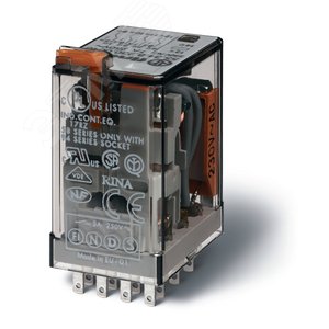 Реле электромеханическое универсальное миниатюрное, монтаж в розетку, 4CO 7A, контакты AgNi, катушка 36В DC, степень защиты RTI, опции: кнопка тест +
