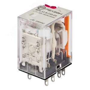 Промежуточное реле, 2 перекидных контакта 12А (24В AC) блокируемая кнопка проверки, светодиод
