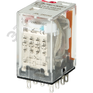 Промежуточное реле, 4 перекидных контакта 6А, 6В (AC), блокируемая кнопка проверки, светодиод