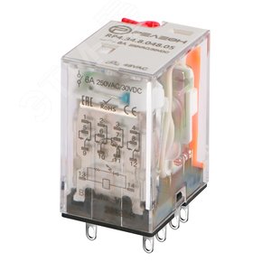 Промежуточное реле, 4 перекидных контакта 6А ( 36 AC) блокируемая кнопка проверки, светодиод