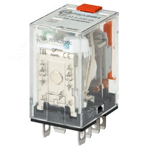 Миниатюрное силовое реле, 2 перекидных контакта 10А (36В AC) блокируемая кнопка проверки + светодиод