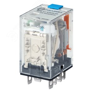 Миниатюрное силовое реле, 2 перекидных контакта 10А (12В DC) блокируемая кнопка проверки + светодиод