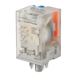 Универсальное реле, 2 перекидных контакта 10А (48В DC) 8 штырьковый разъем