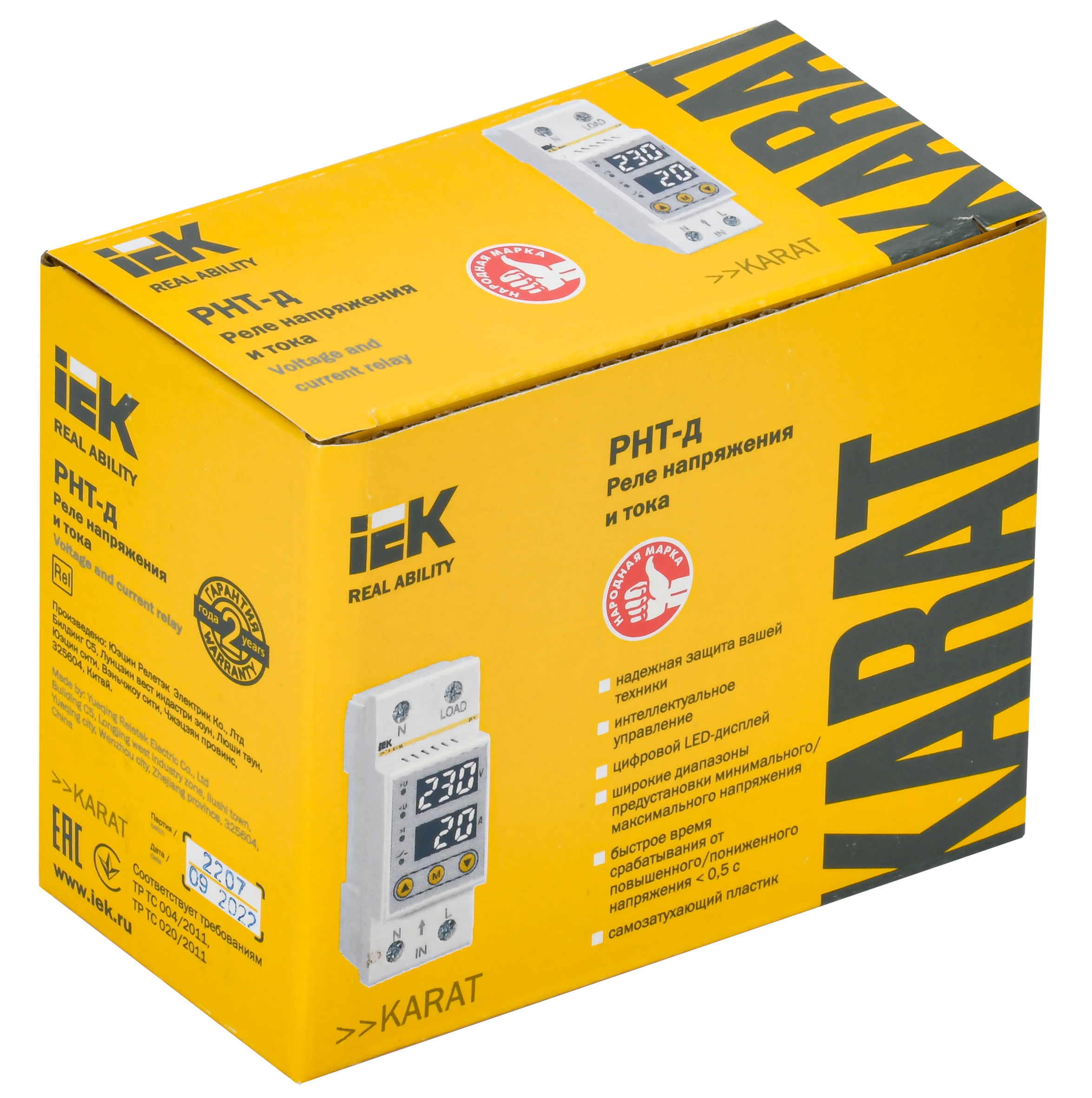 Реле напряжения и тока РНТ-д однофазное 36мм 63А IEK