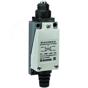 Выключатель путевой ВП 25-2110М-65 У2, толкатель, 1з+1р, безинерционный, 21х56 мм, 3А, IP65