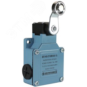 Выключатель путевой ВП 40-2123М-66 У2, рычаг со стальным роликом горизонтального срабатывания, 1з+1р, мгновенный, без сальника, IP66