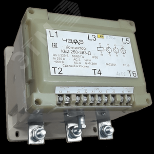 Вакуумный контактор (реверс. с мех. блокировкой, 3-полюсный) предназначен для использования в пускателях, станциях управления, коммутации токов включения и отключения асинхронных электродвигателей с короткозамкнутым ротором и других приемников электроэнергии переменного тока. Особенности - реверсивный контактор, ОПН-0.38кВ, механическая износостойкость 1000 тыс.ед., 3-полюсный, вспомогательные контакты - 6 замыкающих и 6 размыкающих, номинальное напряжение переменного тока 380В, номинальное напряжение цепи управления 110В Aс, номинальное напряжение цепи управления постоянного тока 110В Dс, номинальный ток главной цепи 630А. Из-за того, что коммутация происходит в герметично закрытой камере, обеспечивается высокая безопасность обслуживающего персонала, повышается рабочий ресурс контакторов на предельных токах коммутации, снижаются эксплуатационные расходы и потери от аварийных простоев, уменьшается потребляемая мощность и минимизируются звуковые эффекты от коммутации.