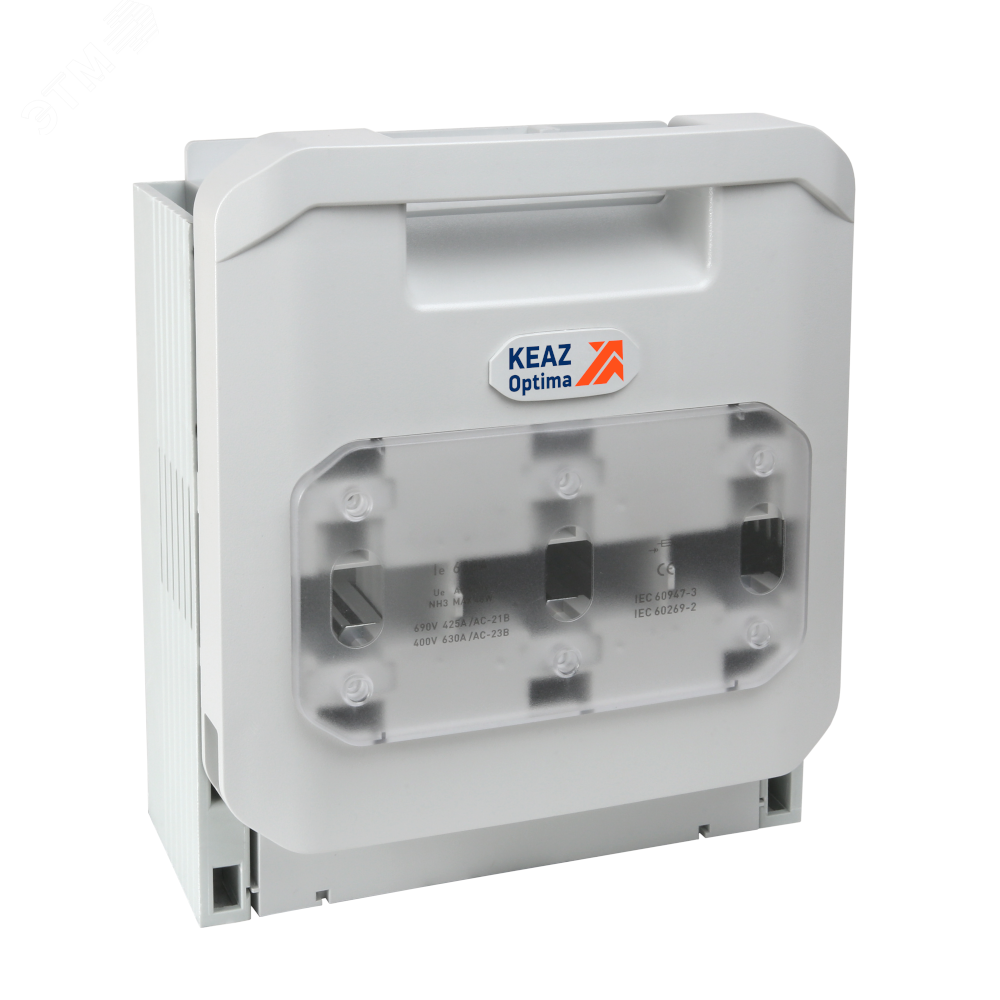 3 полюсный предохранитель-выключатель-разъединитель переменного тока на номинальный ток 630 А со способом установки стационарный с креплением на панели . Предохранители-выключатели-разъединители (ПВР) OptiBlock – выключатели-разъединители низкого напряжения, в сочетании с плавкими вставками предназначенные для включения/выключения нагрузки, защиты от коротких замыканий и перегрузок электрических цепей напряжением до 690 В, частотой 50(60) Гц при токах до 630 А. Все ПВР рекомендуется комплектовать плавкими вставками серии OptiFuse NH – специальное предложение для данных систем.