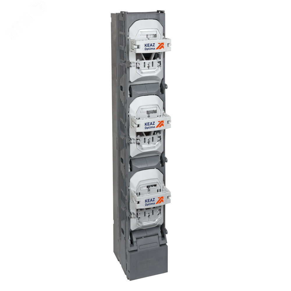 Предохранитель-выключатель-разъединитель 3 полюсный переменного тока на номинальный ток 400 А, со способом установки на шины и межшинным расстоянием 185 мм, имеющий пофазный способ коммутации. Предохранители-выключатели-разъединители планочные КЭАЗ OptiVert – корпуса рубильников низкого напряжения, в сочетании с плавкими вставками предназначенные для включения/выключения нагрузки, защиты от коротких замыканий и перегрузок электрических цепей напряжением до 690 В, частотой 50(60) Гц при токах до 630 А. Все предохранители-выключатели-разъединители рекомендуется комплектовать плавкими вставками серии OptiFuse NH – специальное предложение для данных систем.