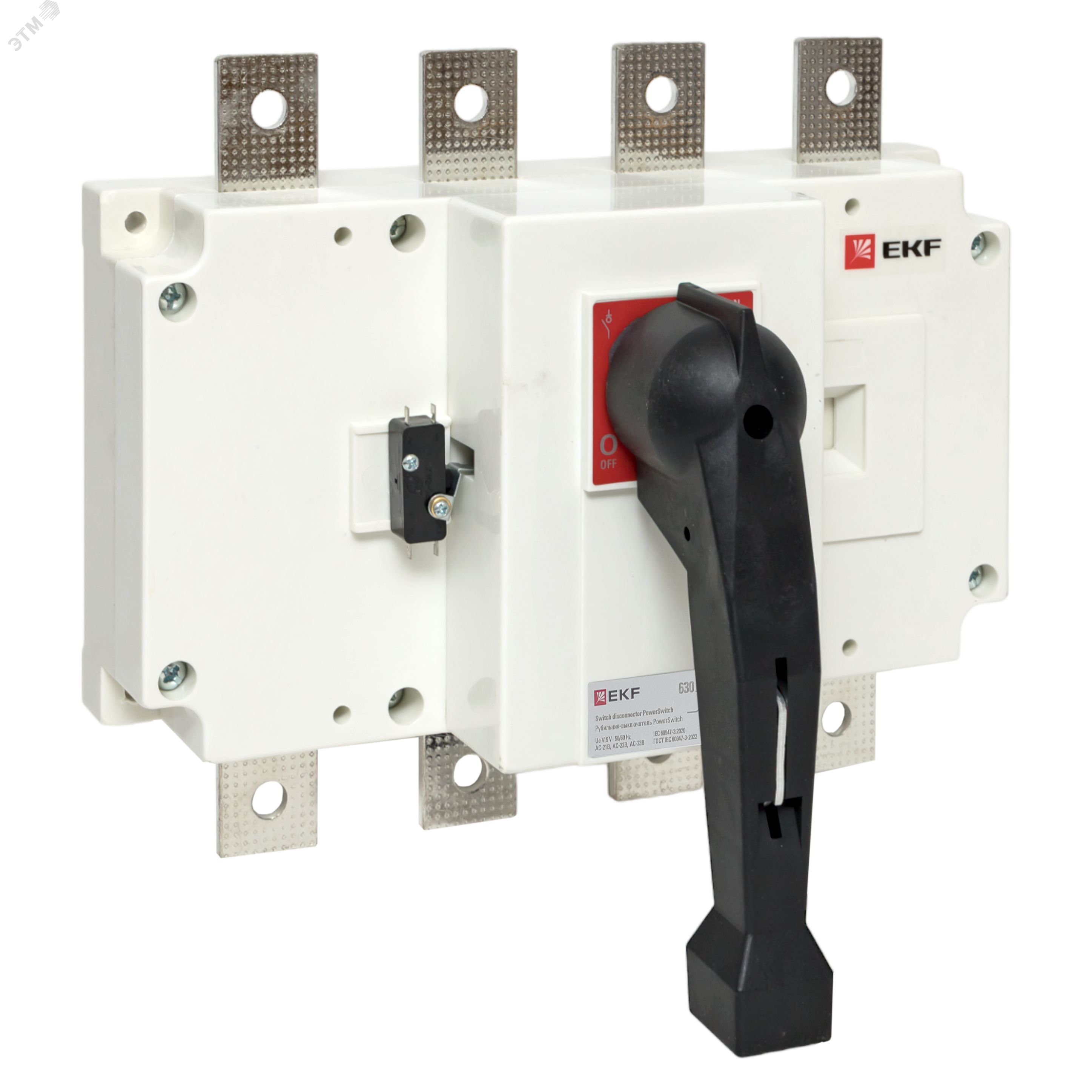 Выключатели и переключатели PowerSwitch EKF серии PROxima предназначены для работы в трехфазных сетях переменного тока частотой 50 Гц с номинальным напряжением до 660 В в устройствах распределения электрической энергии. Рубильник-выключатель PowerSwitch предназначен для неавтоматических нечастых операций включения и отключения токов нагрузки в номинальном режиме. Механизм рубильника обеспечивает мгновенное (13,8 мс) размыкание контактовнезависимо от скорости перемещения рукоятки. Оболочка, изготовленная из ненасыщенной полиэфирной смолы, армированной стекловолокном, обладает превосходными характеристиками огнестойкости, диэлектрическими характеристиками, безопасной эксплуатацией, устойчивостью к углекислому газу и ударопрочностью.