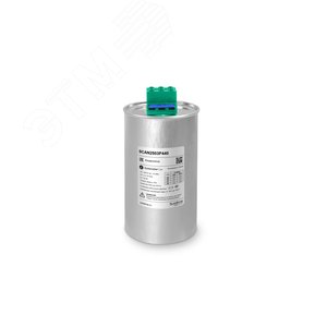 Низковольтный трёхфазный конденсатор торговой марки Systeme Electric серии SystemeSet типа Can предназначен для компенсации реактивной мощности. Силовой конденсатор представляет собой три однофазных конденсатора, собранных в единую конструкцию. В конденсаторах в качестве диэлектрика используется металлизированная полипропиленовая плёнка с функцией самовосстановления. В конструкцию конденсатора также входят предохранитель с мембраной избыточного давления, клеммный блок с разрядным резистором. Корпус конденсатора выполнен из экструдированного алюминия. В качестве пропитки используется сухая биоразлагаемая смола без ПХБ, без SF6. Номинальная мощность 25 кВАр, номинальное напряжение 440В, температура окружающей среды от -40 до +60 градусов Цельсия, Ф116, длительно выдерживаемый ток 2In, максимальный пусковой ток 400In, степень защиты IP20.
