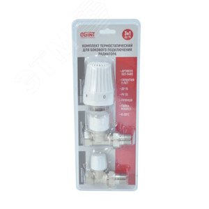 Комплект для бокового подключения радиатора термостатический 3в1 жидкостный для двухтрубной системы Ду 15 Ру10 прямой гайка М30х1,5 Ogint