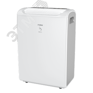 Осушитель воздуха Funai (Фунаи) RAD-N26F6E рассчитан на помещения, площадью до 37 м2. Он имеет возможность установки нужной влажности воздуха, которая будет автоматически поддерживаться. Конденсат отводиться в специальный резервуар, но также есть возможно непрерывного его слива через шланг. Особенности: световая индикация, комбинирование функций, таймер отсрочки включения и выключения на 1—24 часа, точное поддержание уровня влажности, встроенные колесики для перемещения, система настройки скорости обдува, индикация уровня воды в баке, режим разморозки, который автоматически включается при падении температуры окружающего воздуха ниже +5 градусов, останавливая работу компрессора. Особенности: световая индикация, комбинирование функций, таймер отсрочки включения и выключения на 1—24 часа и другие.