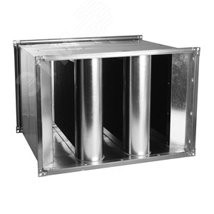 Шумоглушитель предназначен для поглощения турбулентных завихрений и аэродинамического шума в прямоугольных каналах, значительно снижает уровень шума в воздуховоде. Шумоглушитель используется совместно со звукоизолированным вентилятором в тех случаях, когда требования по снижению уровня шума предъявляются не только к воздуховоду, но и к оборудованию в целом. Шумоглушитель выполнен из оцинкованной стали со специальным звукопоглощающим материалом. Устанавливается в прямоугольных воздуховодах. Оснащён соединительными фланцами для удобства монтажа. Для максимального снижения уровня шума следует установить шумоглушитель непосредственно после вентилятора.