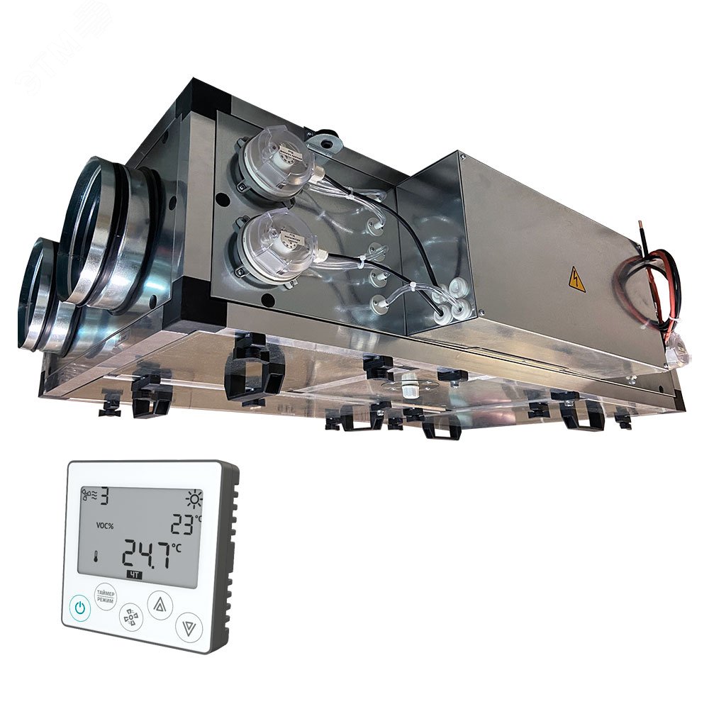 "Установка вентиляционная Node1 предназначена для общеобменной вентиляции помещений. Компактность установки позволяет располагать еe под потолком или у стены, экономя при этом пространство. В состав установки входит - пластинчатый рекуператор для утилизации теплоты вытяжного воздуха, фильтры для очистки воздуха, вентиляторы с автотрансформаторным регулированием - 3 скорости, нагреватель для подогрева приточного воздуха (электрический PTC или водяной), интегрированная система автоматики с дистанционным пультом управления, управление компрессорно-конденсаторным блоком (охладитель, комнатный датчик и реле защиты от обмерзания в состав установки не входит - поставляется отдельно), управление по WiFi со смартфона ОС AndroidДополнительные элементы и опции, поставляемые отдельно, воздушные заслонки, гибкие вставки, шумоглушители, охладитель, порошковая покраска."