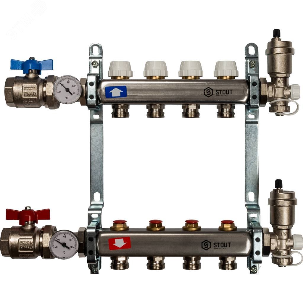 Коллектор из нержавеющей стали в сборе без расходомеров 4 выходов
