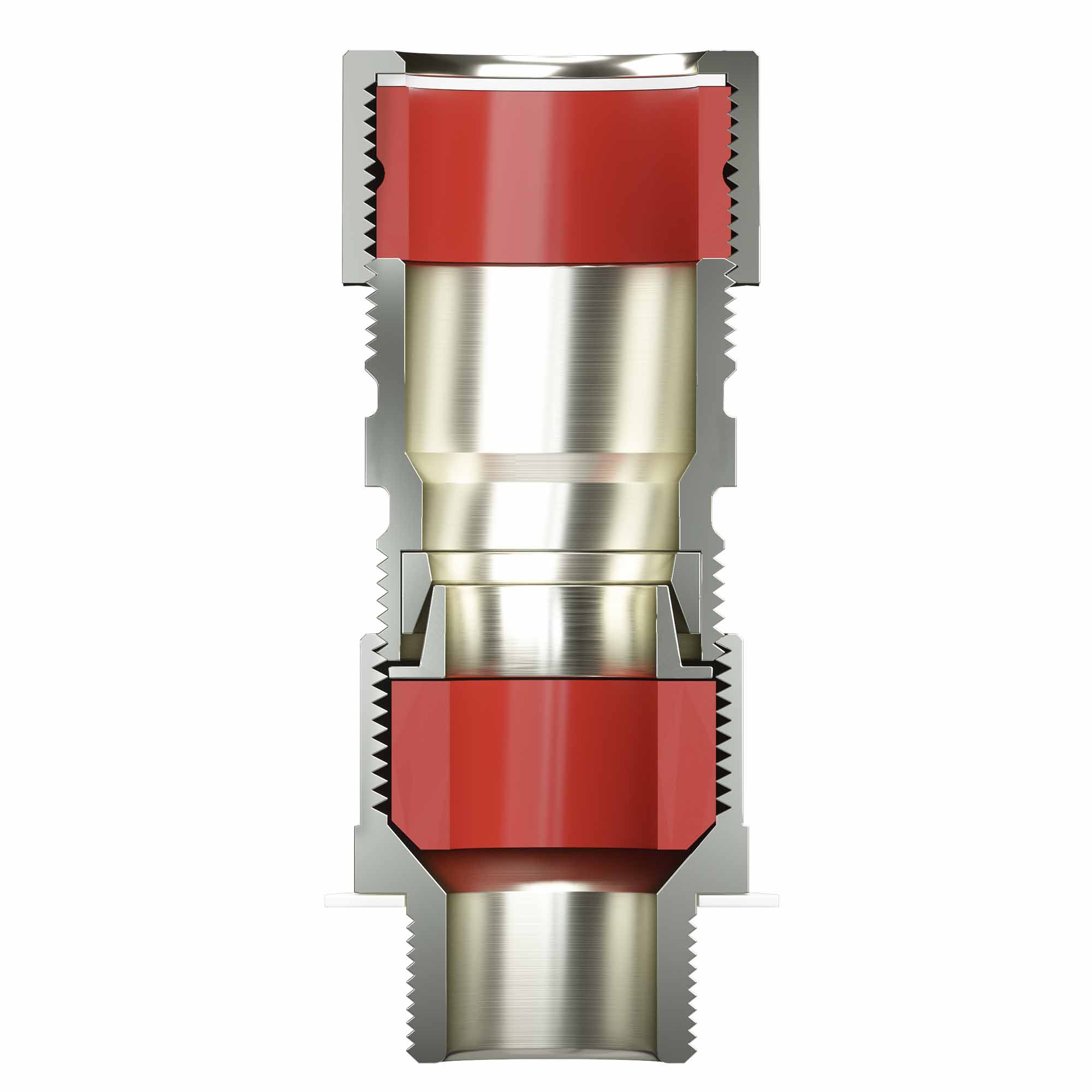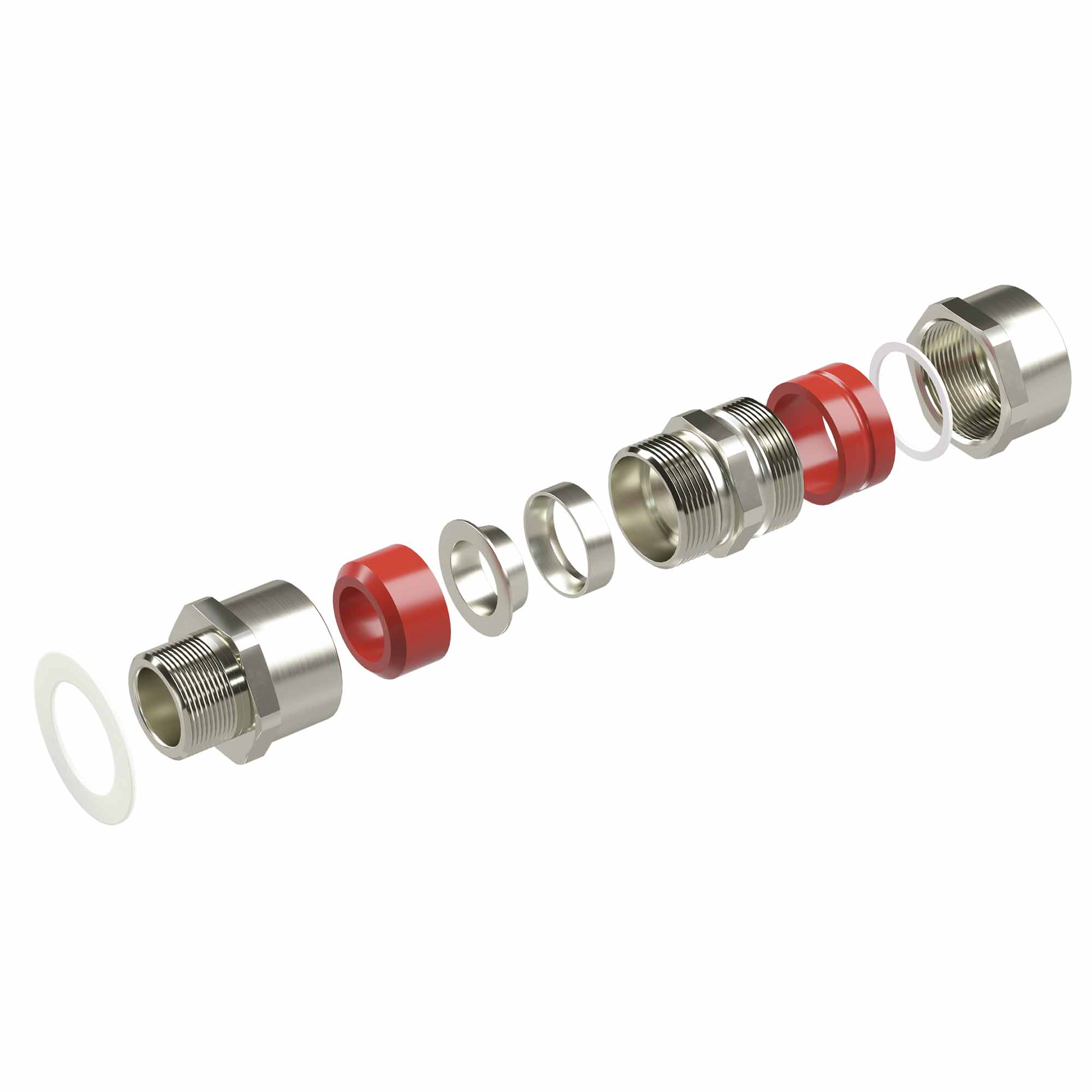 Взрывозащищенный кабельный ввод серии КА для бронированного кабеля М50х1,5 d:30,8-39мм D:36-46мм. Никелированная латунь IP66/IP68