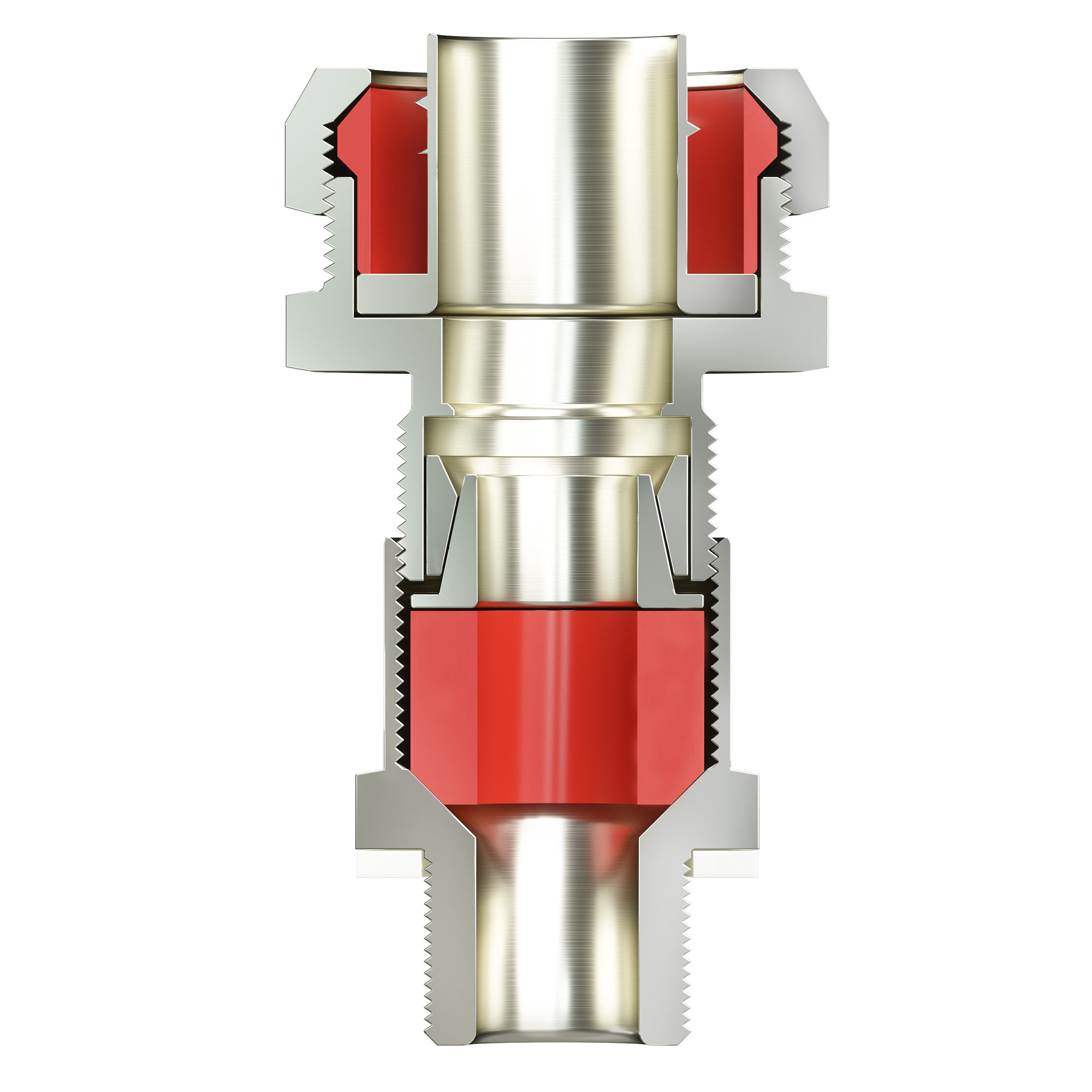 Взрывозащищенный универсальный кабельный ввод серии КАЕРМ для бронированного и небронированного кабеля в металлорукаве COSMEC Dn:15 М20х1,5 d:5,8-12мм. Никелированная латунь IP66/IP68