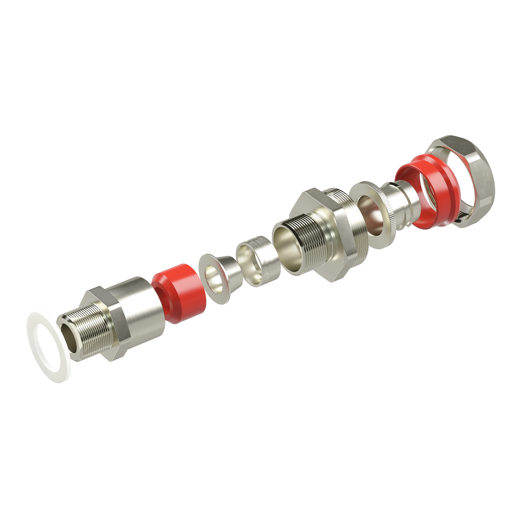 Взрывозащищенный универсальный кабельный ввод серии КАЕРМ для бронированного и небронированного кабеля в металлорукаве COSMEC Dn:26 М25х1,5 d:11,8-18мм. Никелированная латунь IP66/IP68